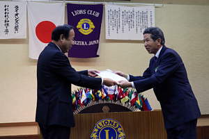 会長から会員増強賞を贈呈されるL.永戸秀樹 |