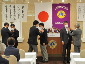 新旧役員のバッジ交換 |